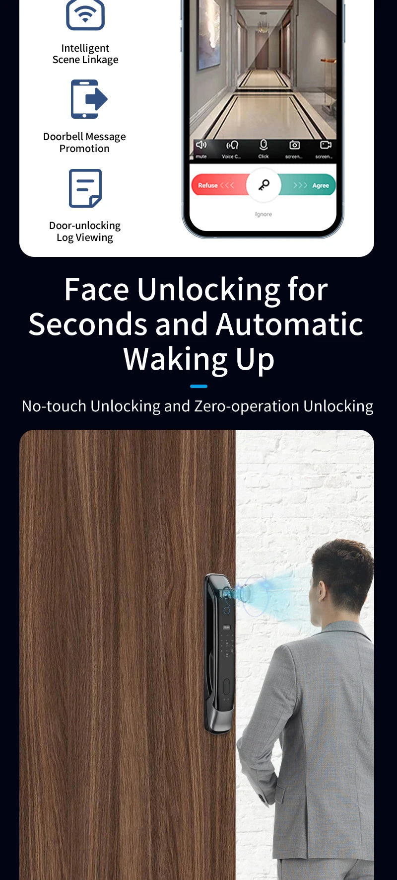 Safe and keyless, brush your face and go home! Tuya 3D facial intelligent lock, WiFi intelligent connection new experience, WiFi remote control+keyless entry, perfect balance of security and convenience!
